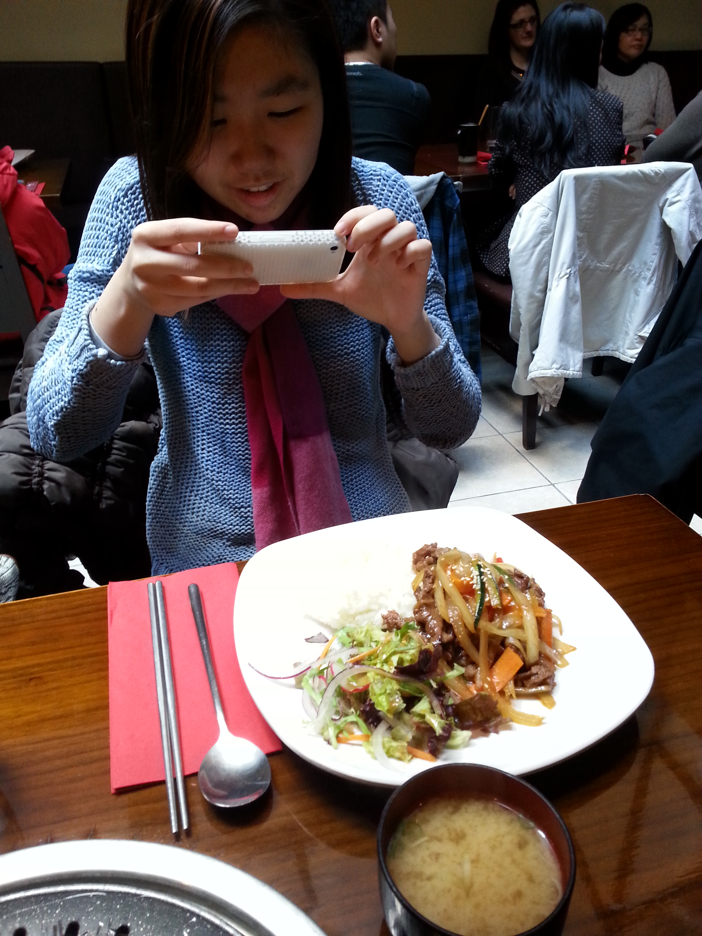 here is a picture of her taking a picture of her food before tucking in. #ASIANALERT