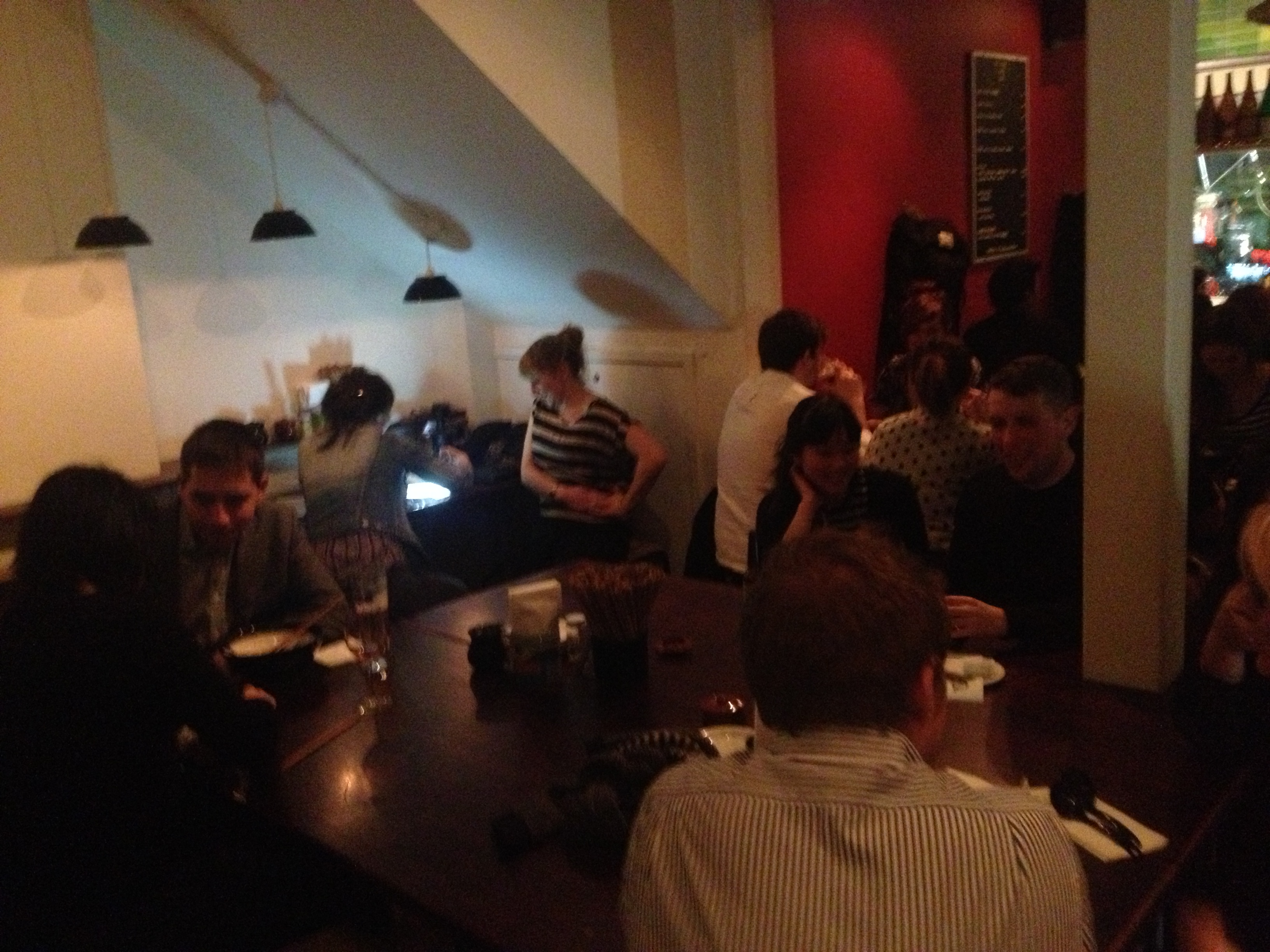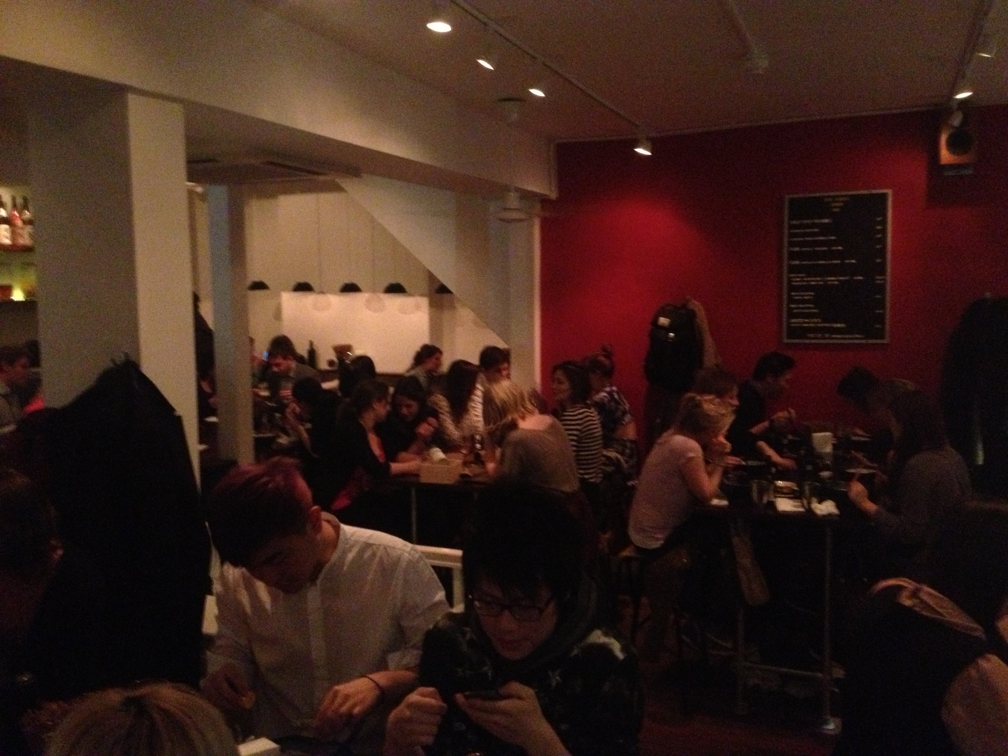 We had initially intended to go to the famed Burger & Lobster for dinner. Owing, however, to the approximated 2 hour wait, we decided to adjourn somewhere else. My buddy Chor Hiang suggested this ramen place just off Wardour Street called Bone Daddies. With a name like Bone Daddies, my visiting friend from Oxford, Tong Hui and I were naturally highly suspicious. I mean what kind of F&B establishment calls itself Bone Daddies?!! After much thought though, I realised, much to my own dismay as well, there again, that what kind of blog is called rockabite, baby?? So cynicism unjustified, I guess: nomenclature is not fully representative and should not be used as a judging criterion. Any doubts that we initially had were eventually, and perhaps even conclusively, quelled when we saw the queue outside the restaurant. It was uber looooong. The queue extended beyond the entire corridor of the restaurant into that of the massage parlour next door. And that wasn’t it; there was another round of queuing inside. Madness, should have just gone back to Burger & Lobster eh. But seeing the number of people willing to queue in the cold dreary weather outside, we willed ourselves to brave the frostbites and got in line.