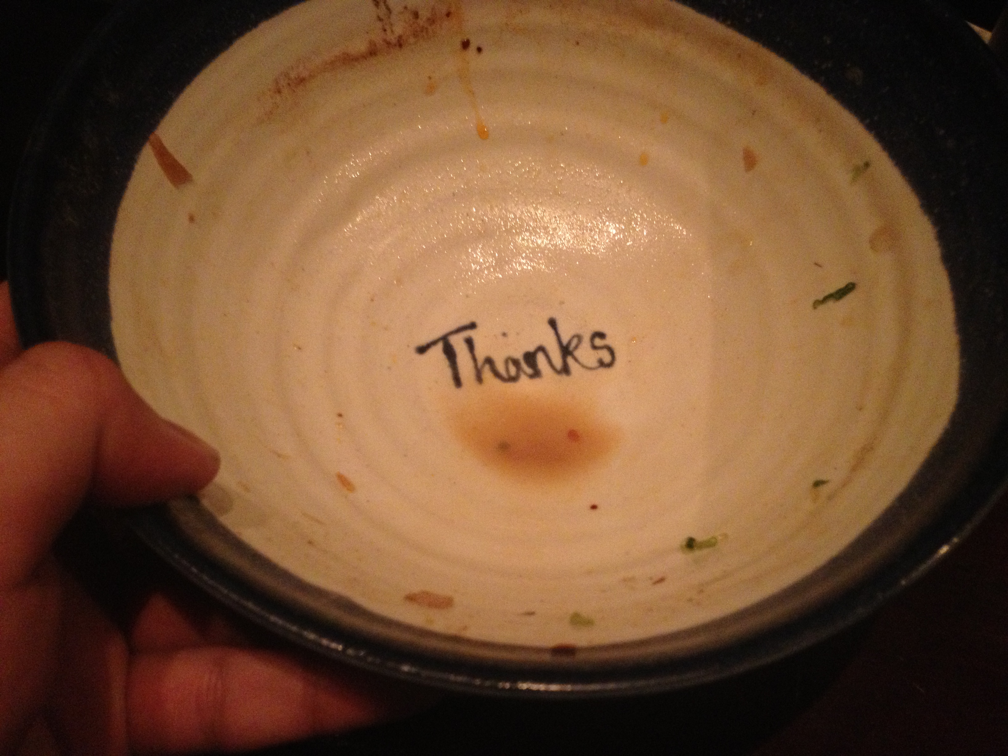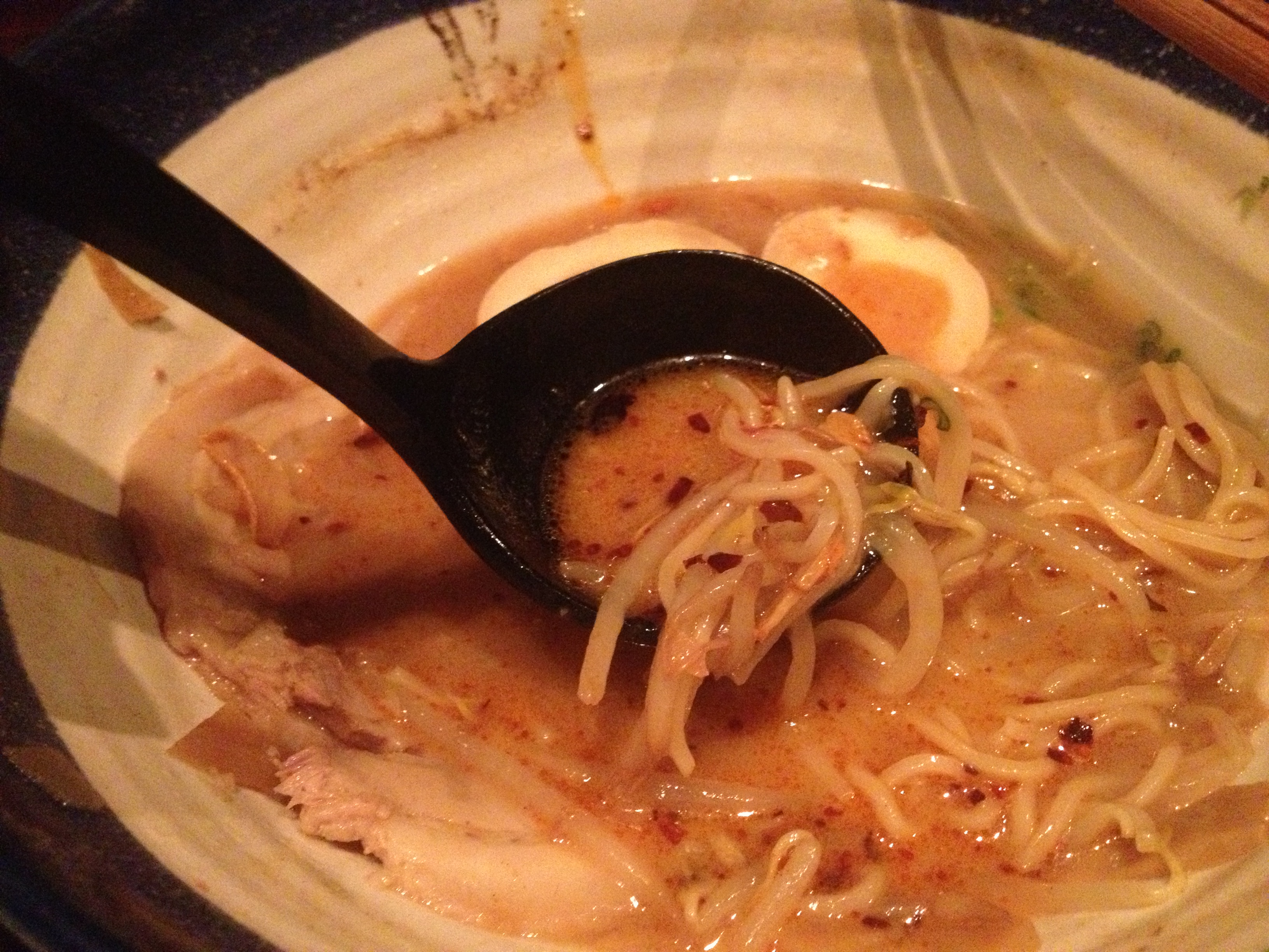 It was funny that their bowls had a ‘thanks’ written at the bottom, almost as though they expected everyone to finish the broth to the last drop. Well, I did anyway and was amused by their sense of humour. The bowl of ramen was filling, unlike my friend had previously warned. Maybe it was the extra egg and bean sprouts.