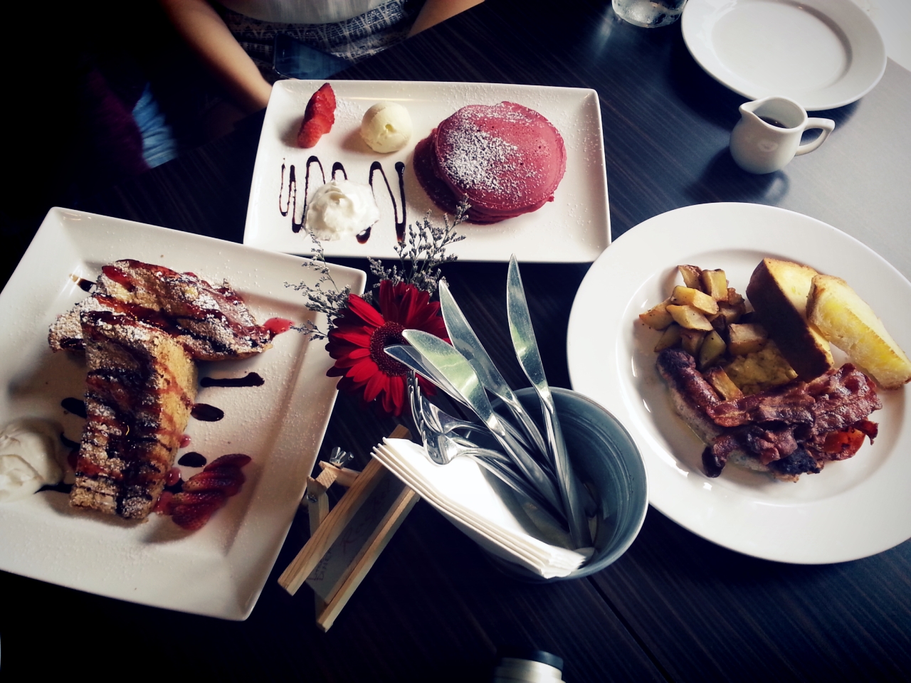 i had been wanting to try this place for the longest time after hearing from a friend that they serve red velvet pancakes. red velvet and pancakes??? i’m personally not a huge fan of red velvet (don’t really understand the hype that always seems to come with it), but the idea of the 2 combined sounded rather novel and enticing nonetheless.