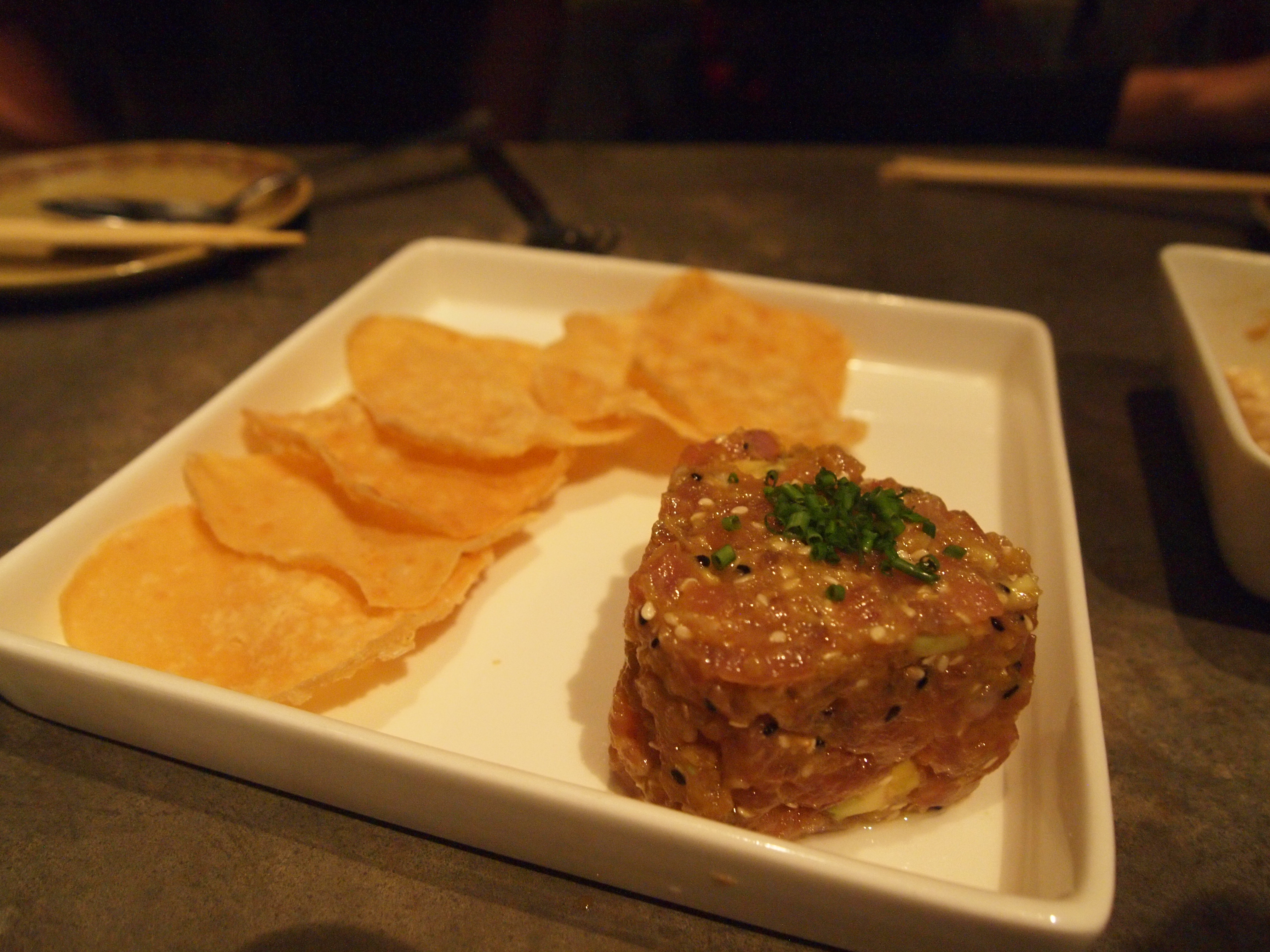 it was a good recommendation! even my friends who don’t normally eat tuna sashimi enjoyed it as the strong taste that sometimes accompanies raw tuna wasn’t there at all, probably because the tuna was nicely seasoned. the tuna was very fresh and despite it being a tartare, the pieces were distinct and not too finely minced; they retained a chunkiness to them which i really liked. it would have been nice if there was a little more avocado though. we also couldn’t taste any wasabi at all! a very yummy tartare that went well with the flour chips.