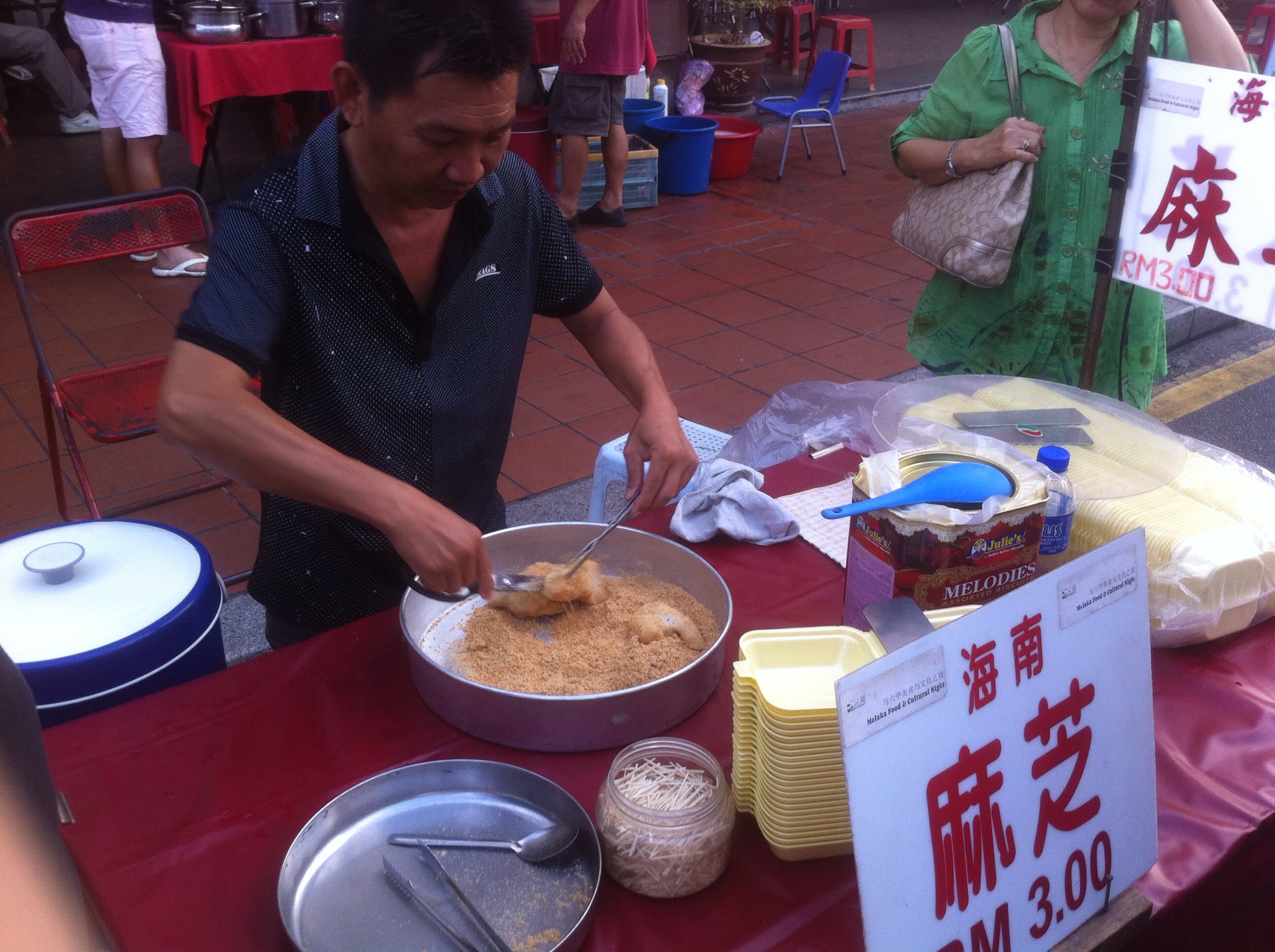 There are also sweet snacks available along Jonker Walk. Here is kueh dadar, a nonya pancake role filled with grated coconut. The one I bought was pretty mediocre but at only RM1? Always worth a punt.
