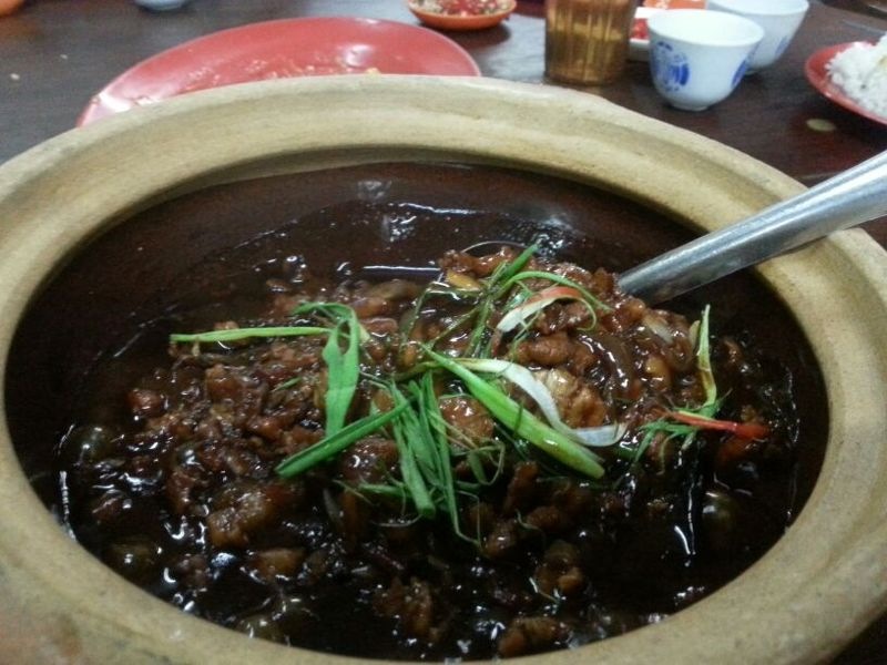 Claypot pork cooked with sesame oil and salted fish