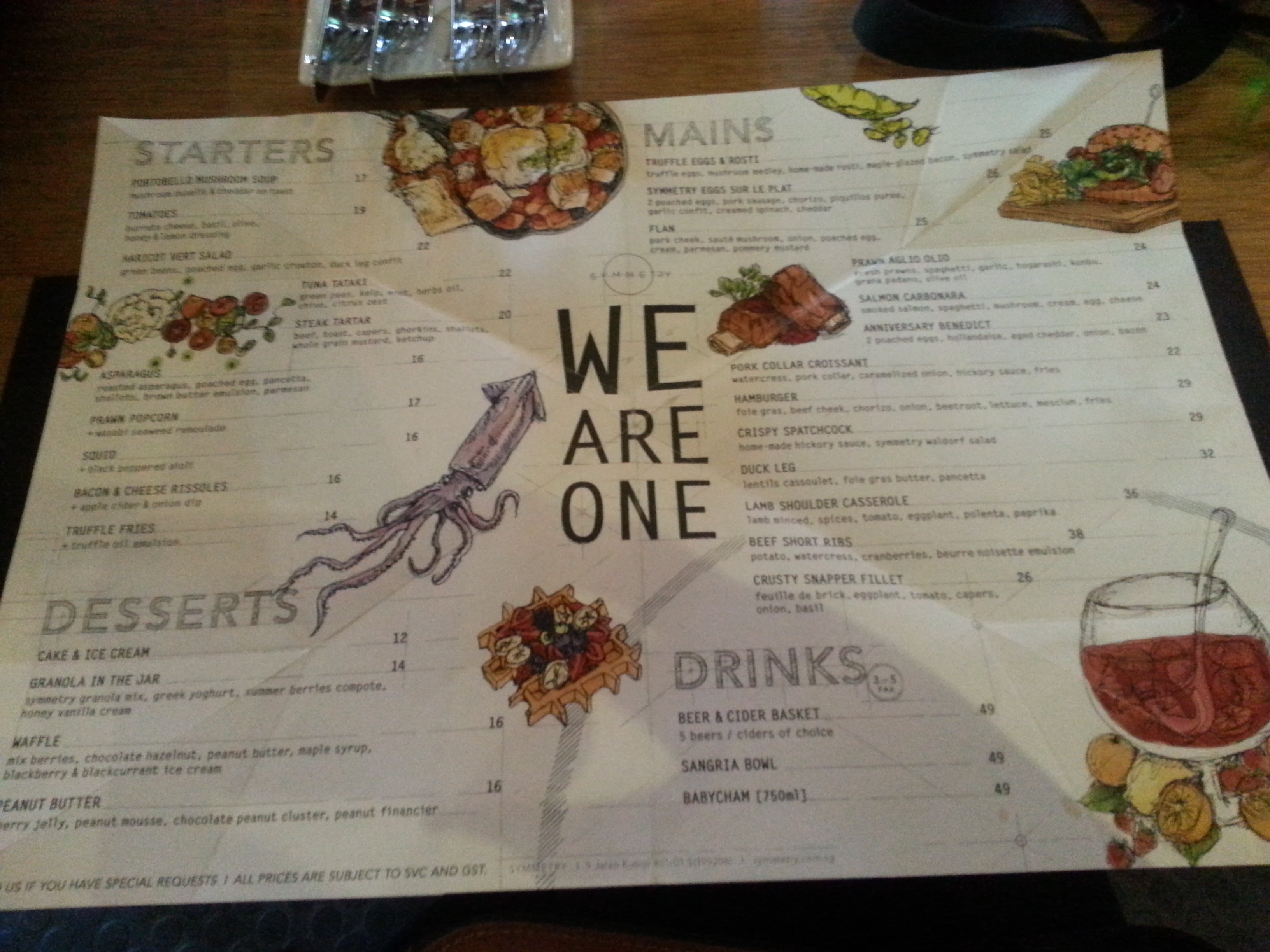 in celebration of their one year anniversary, symmetry has a menu that brings to customers all their best and most popular dishes. it opens up like a marauder’s map, so ordering food was a rather exciting affair hahaha (its the little things!).