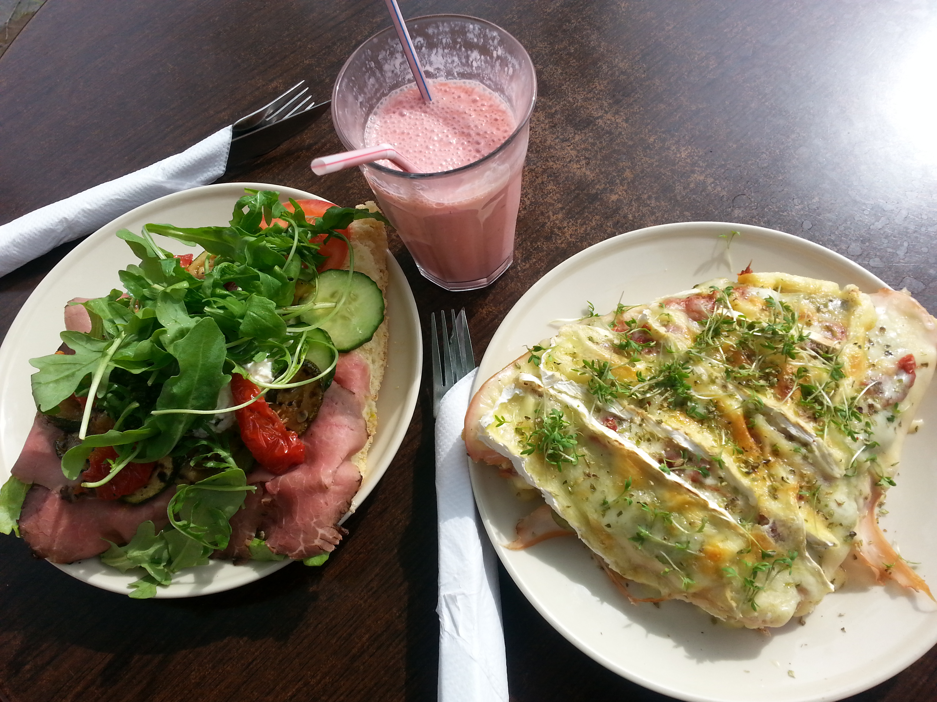 on our first visit there, we tried the roast beef sandwich (left) and the brie with smoked chicken (right), both on cornbread, along with a fruit mix smoothie with yoghurt. never had better sandwiches, i swear this is true!!!
