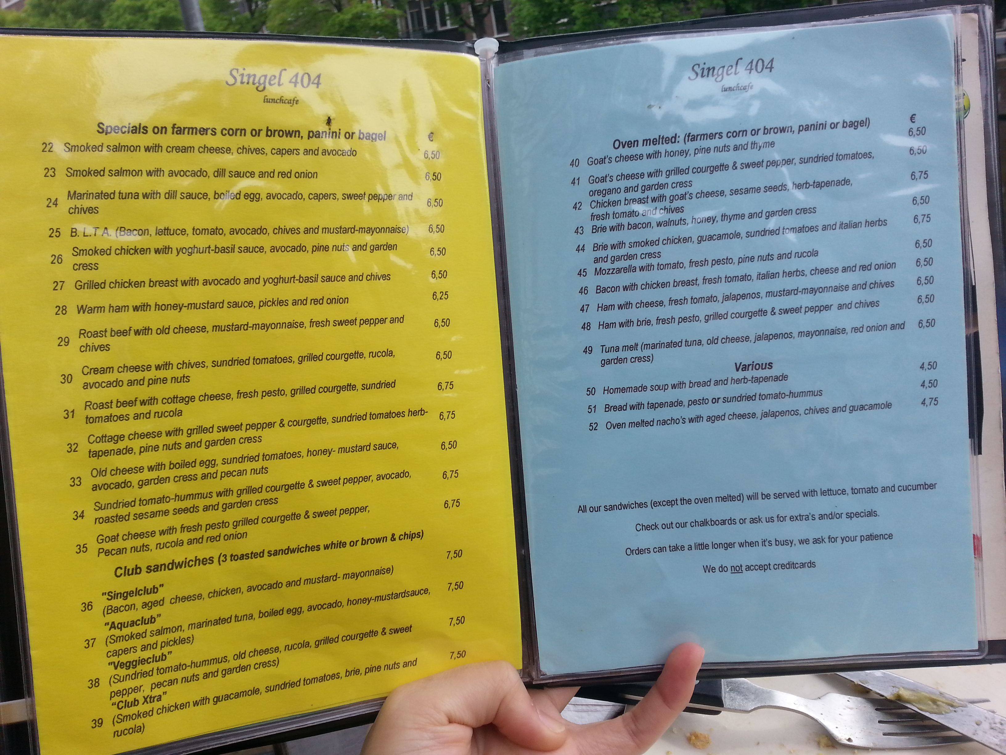 singel 404 is a small cafe by a canal that is conveniently located. they serve some of the best sandwiches i have ever eaten.