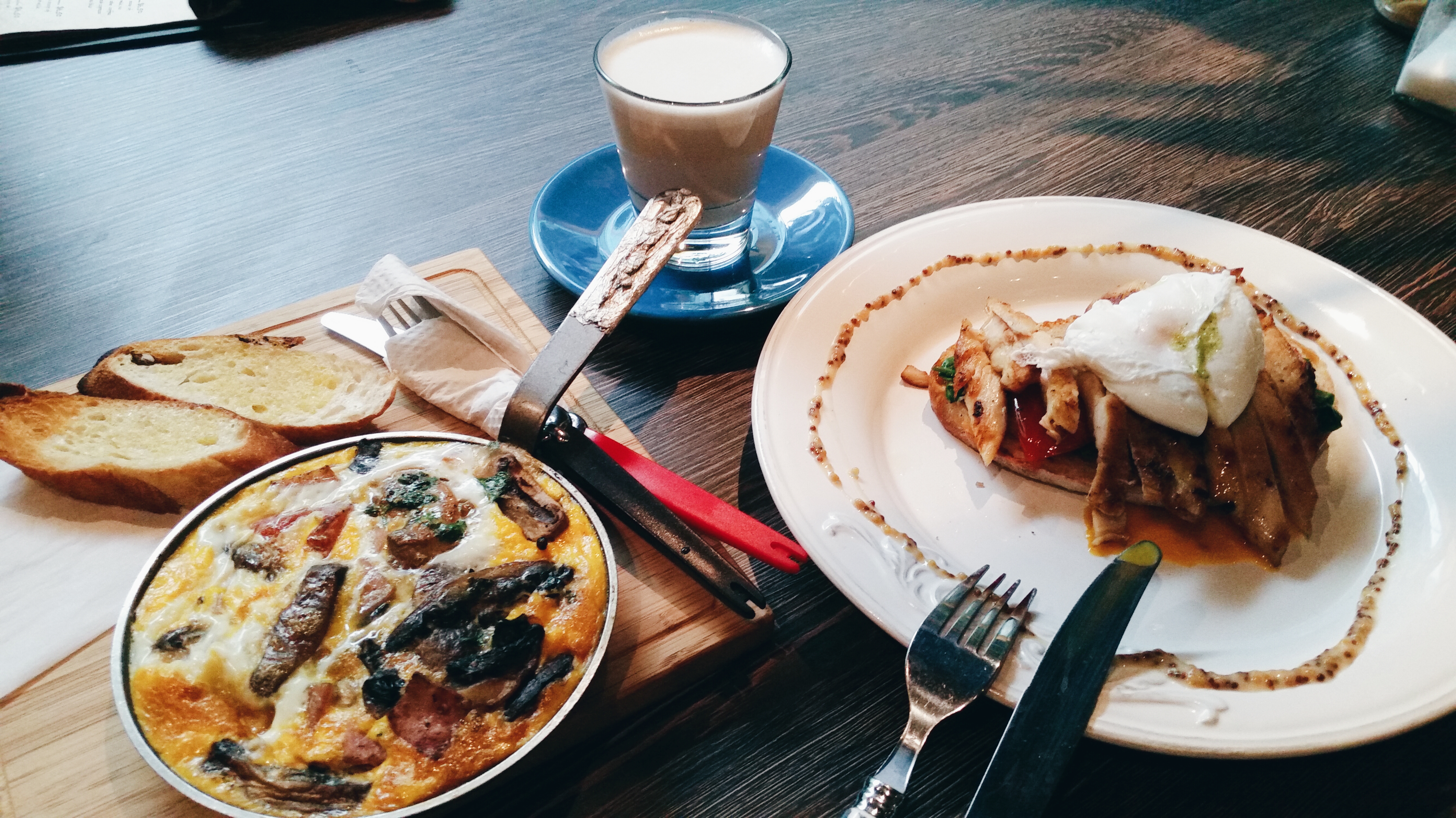 we wanted to get the bircher muesli because i had seen pics of this wonderfully-plated gloriously poached pear sitting atop some muesli (everybody loves pretty food) while reading about the place, but they had no pears that day! so we ended up going for the mushroom frittata: