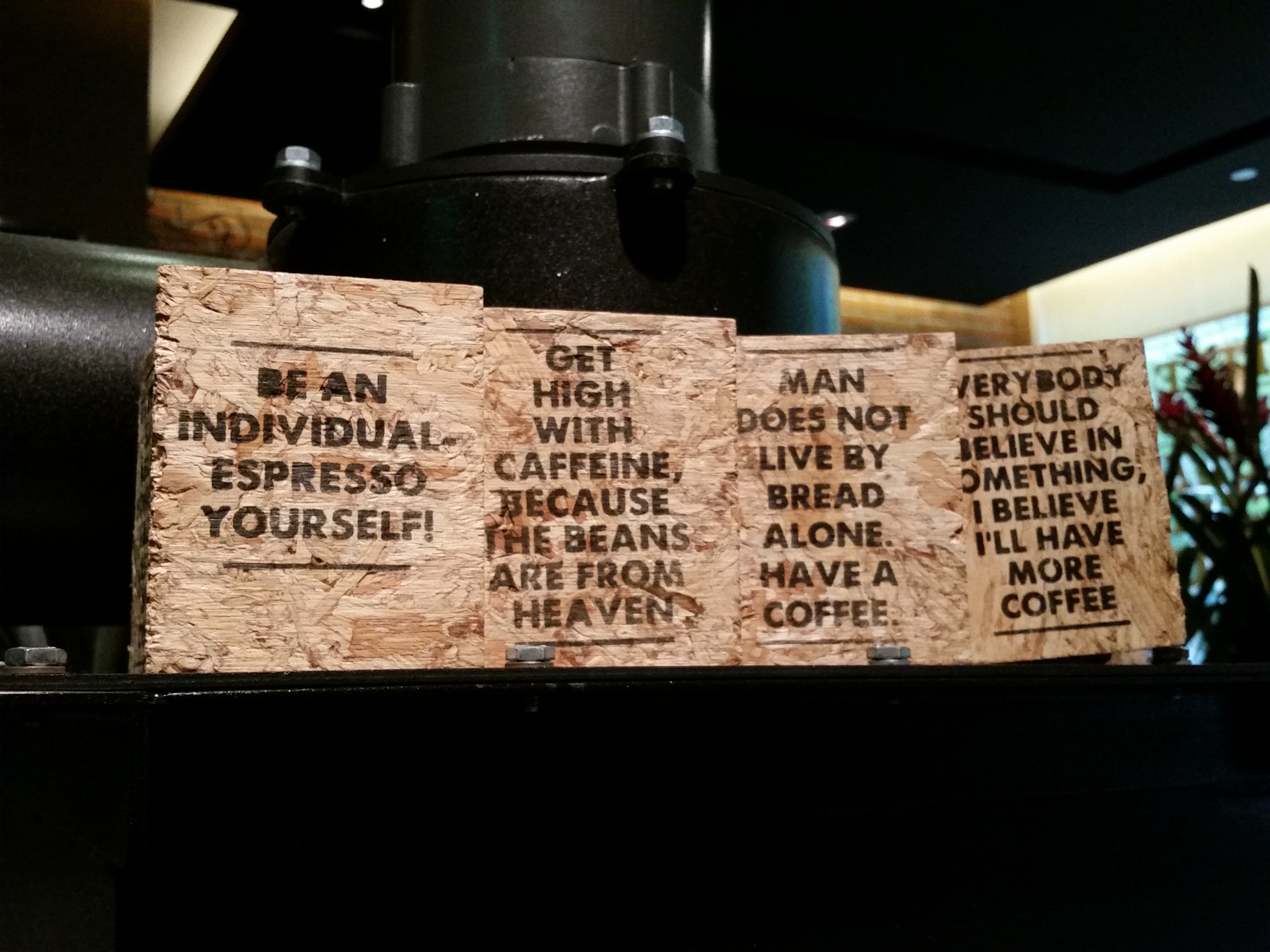 my first thought when i entered this little cafe was that they take their coffee very seriously. not only because the words “coffee boutique” are proudly declared on the big brick wall you see when you enter, but also because they have a few impressive coffee machines hard at work. the interesting thing about the machines is that they are laid out on an open counter and not behind a counter; its almost like you can walk right up and make yourself a coffee: