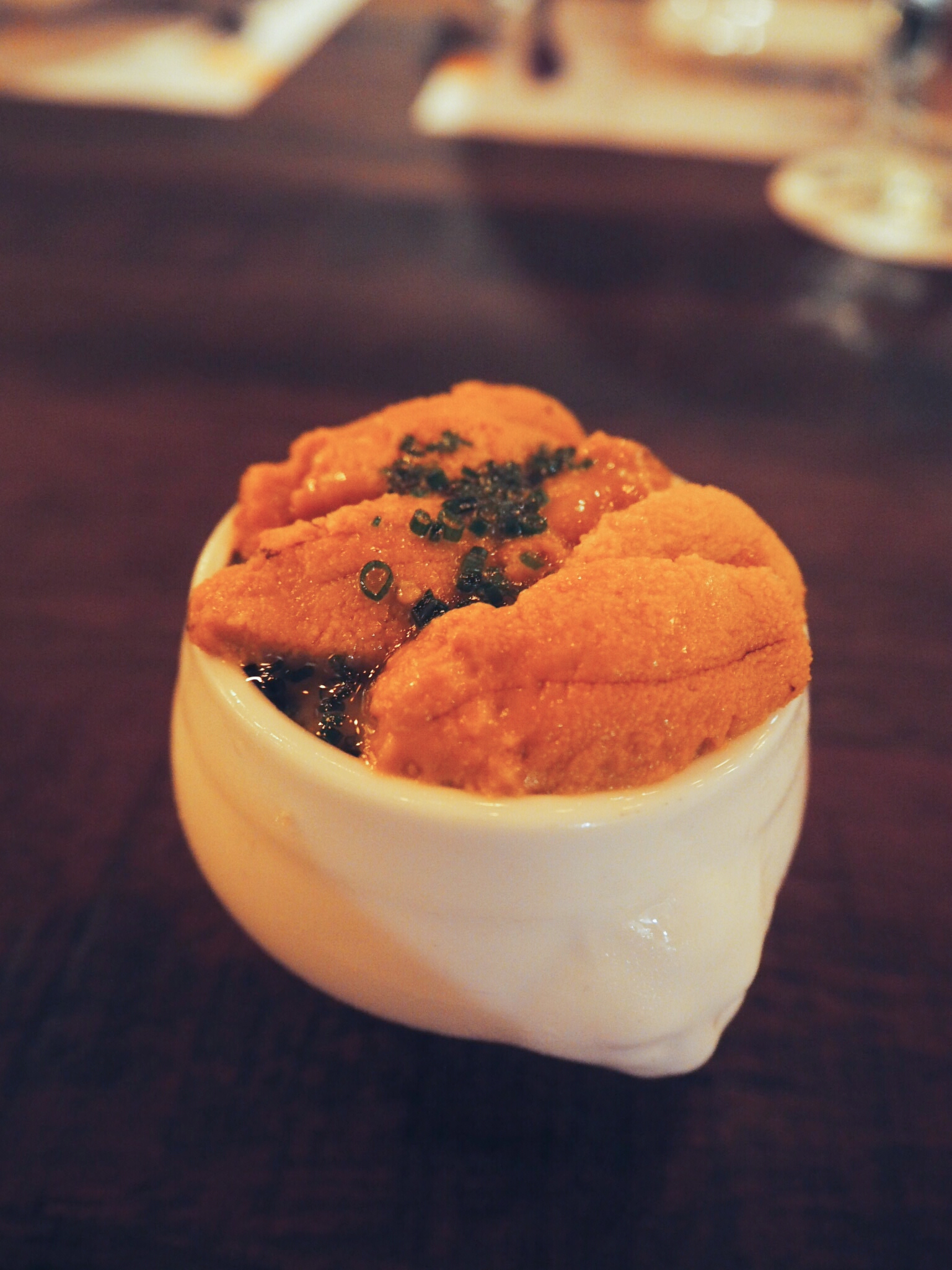 served chilled, this. was. delicious! and we all agreed that it did live up to the hype surrounding it. a generous chunk of fresh uni sat proudly atop squid ink pudding and the two came together wonderfully to make for highly tasty, rich and satisfying mouthfuls; it was truly the epitome of umami. the squid ink pudding (with tomato, cream and egg yolk thrown into the mix) was smooth and creamy, with a strong taste of seafood. this was the first dish to be served and promptly raised our expectations for the rest of the meal. note that its so savoury that it can get quite heavy and jelat, so ordering a portion (or two, depending on group size) to share is ideal.