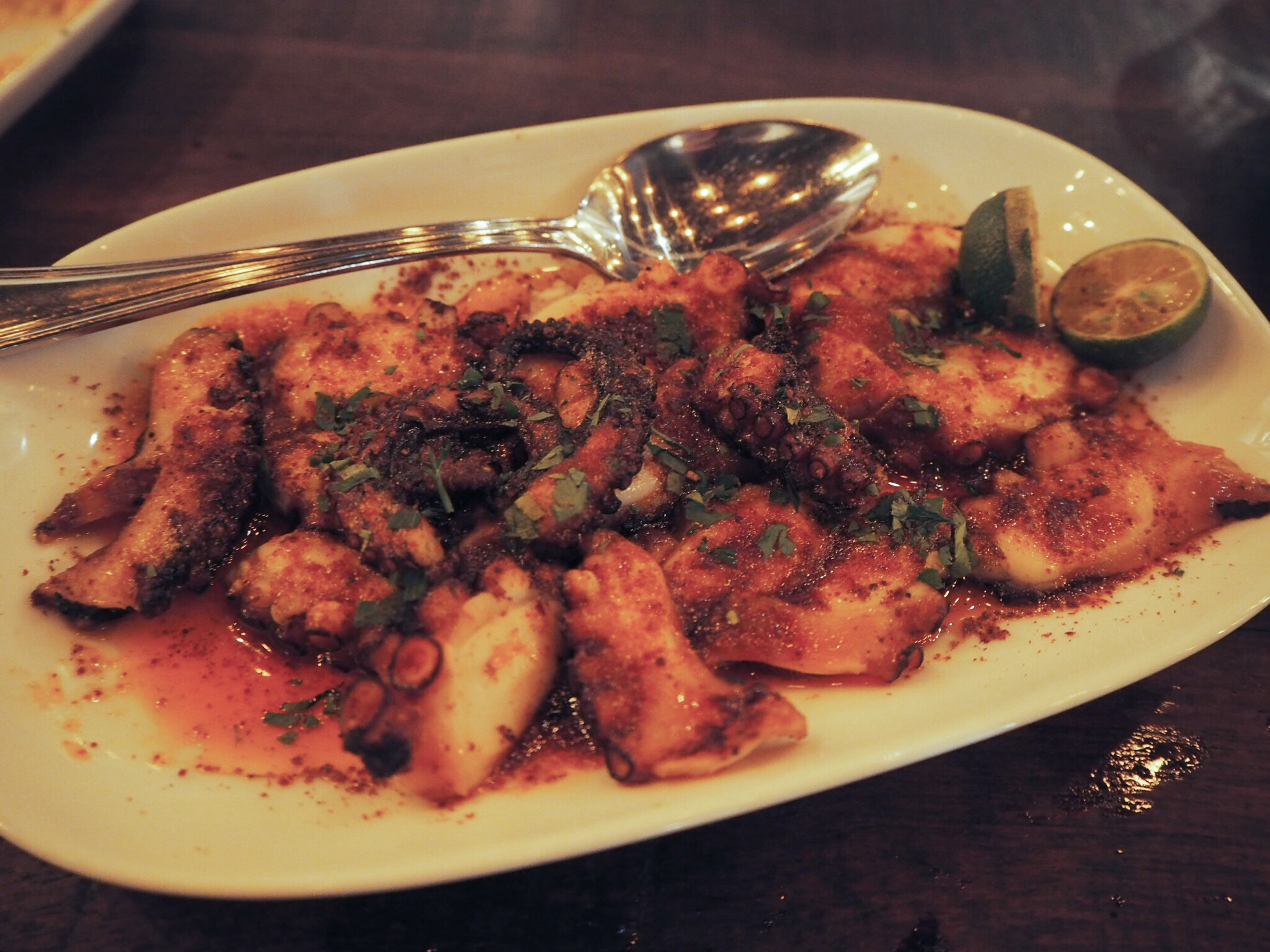 this was a hit with us – the octopus was very fresh, and was speckled with charred bits that added to the taste and texture of each piece. drizzled with a sauce that was subtly spicy and accompanied by lime, this was like grilled sotong on steroids. each piece was crunchy and sweet, with none of the mushiness/sliminess/stringiness that non-fresh or poorly-cooked octopus tends to have. needless to say, our tummies were happy. very happy.