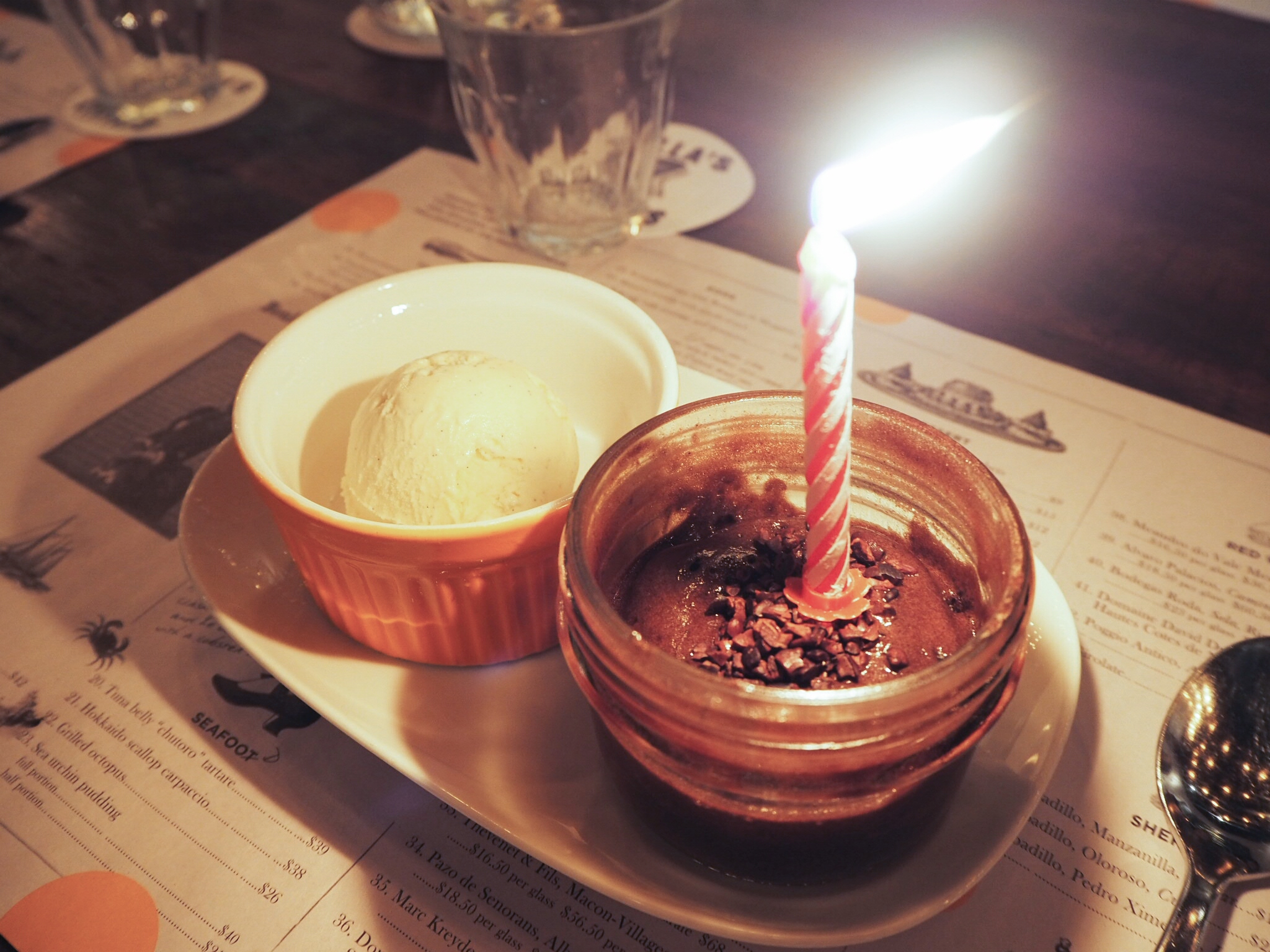 this was the only dessert on the menu (they also have doughnuts, crema catalana and a selection of creamier ice creams) that really called out to us, and we were not one bit disappointed with our choice. we all agreed that this was one of the best chocolate puddings (or even desserts, for that matter) we have ever had!!! it was so so so good. the dark chocolate was extremely rich and delicious, and the pudding actually resembled the inside of a molten lava cake (only the best part of it), only better 😉 the addition of chocolate and coffee chips sprinkled on top added texture and taste to the decadent and ultra creamy and smooth pudding and paired with the vanilla ice cream (which i really have limited recollection of; it was all about the chocolate, really), this is really a chocolate lover’s absolute dream, and we were so tempted to order another serving!