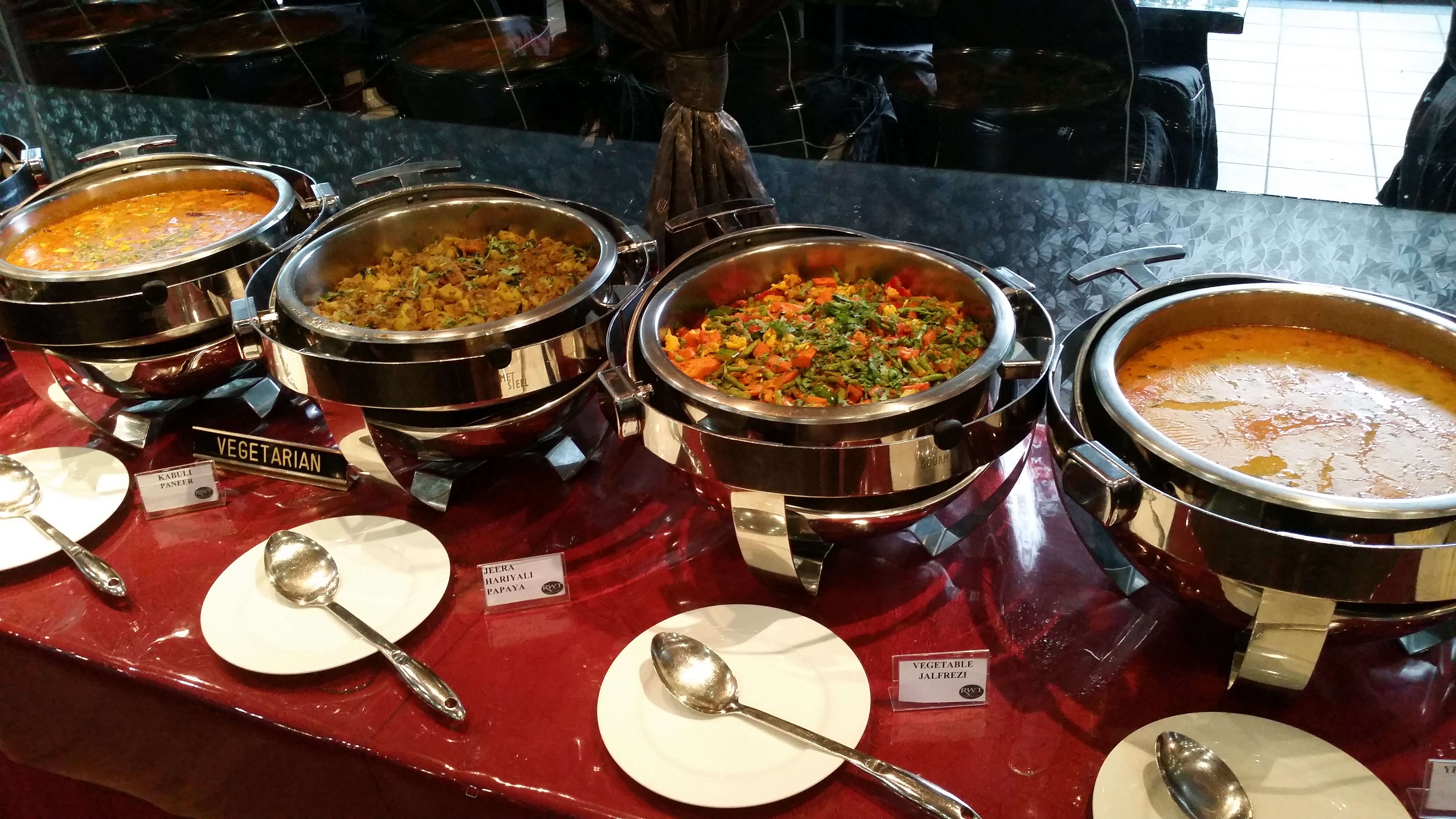 the restaurant looks quite traditionally indian, and is spacious and comfortable. because of the space and number of tables, i think this would make a great place for a group gathering! the buffet spread is on one side of the restaurant, and once i stepped in they started opening the food covers to reveal yummy food within (i must have looked starving) mmmmmm… i immediately got to work and managed to snap pics of the buffet offerings in their full untouched glory before other guests started tucking in!
