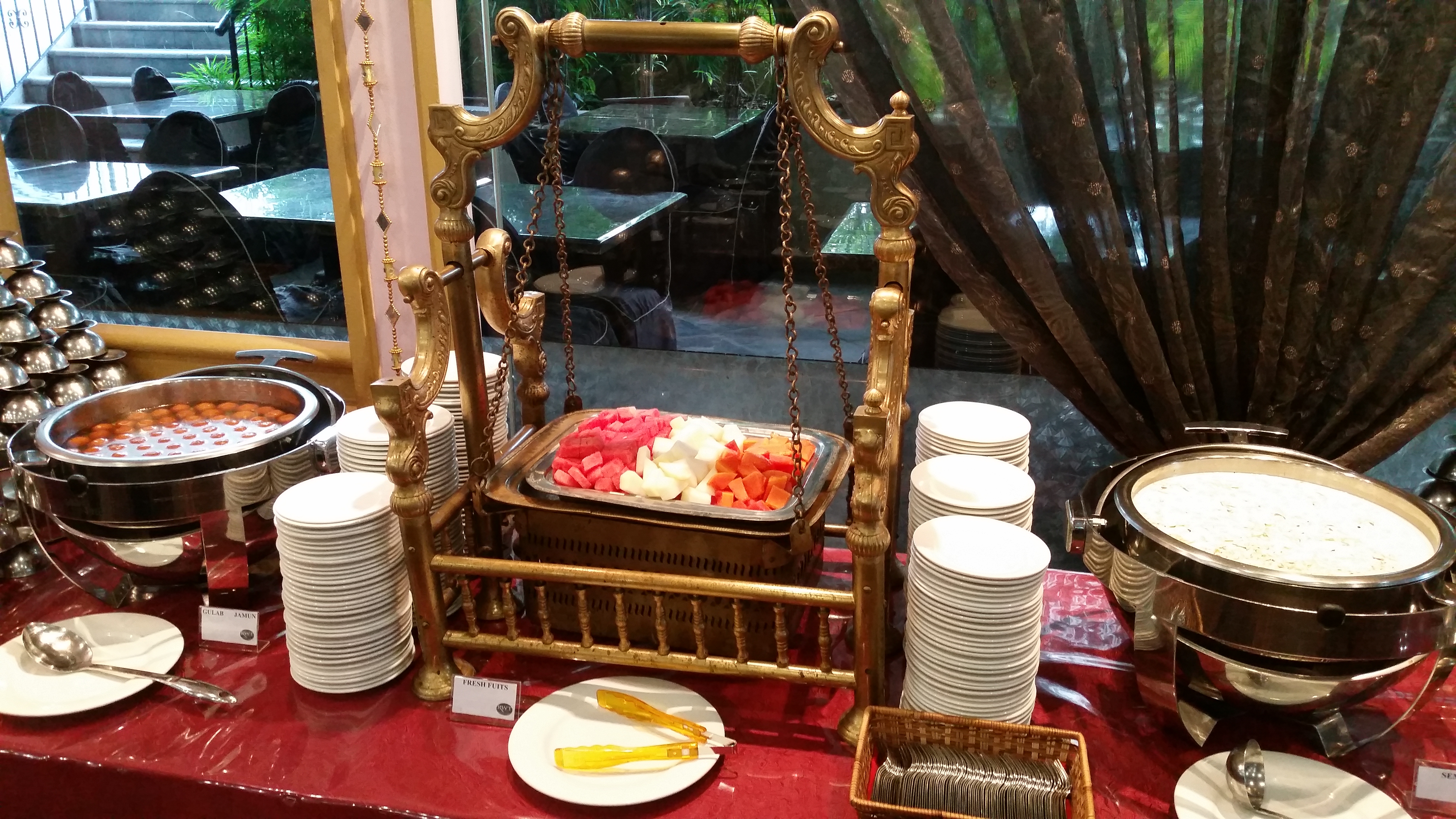 the gulab jamun was extremely sweet (as expected), so we nibbled at it and stopped there. as for the milky dessert, i’m still not sure what exactly goes into it. it was like… vermicelli-type noodles in a very milky base. wasn’t quite our cup of tea at all, so we stuck to the fresh fruits which were super sweet and juicy, a perfect and refreshing end to our heavy meal.