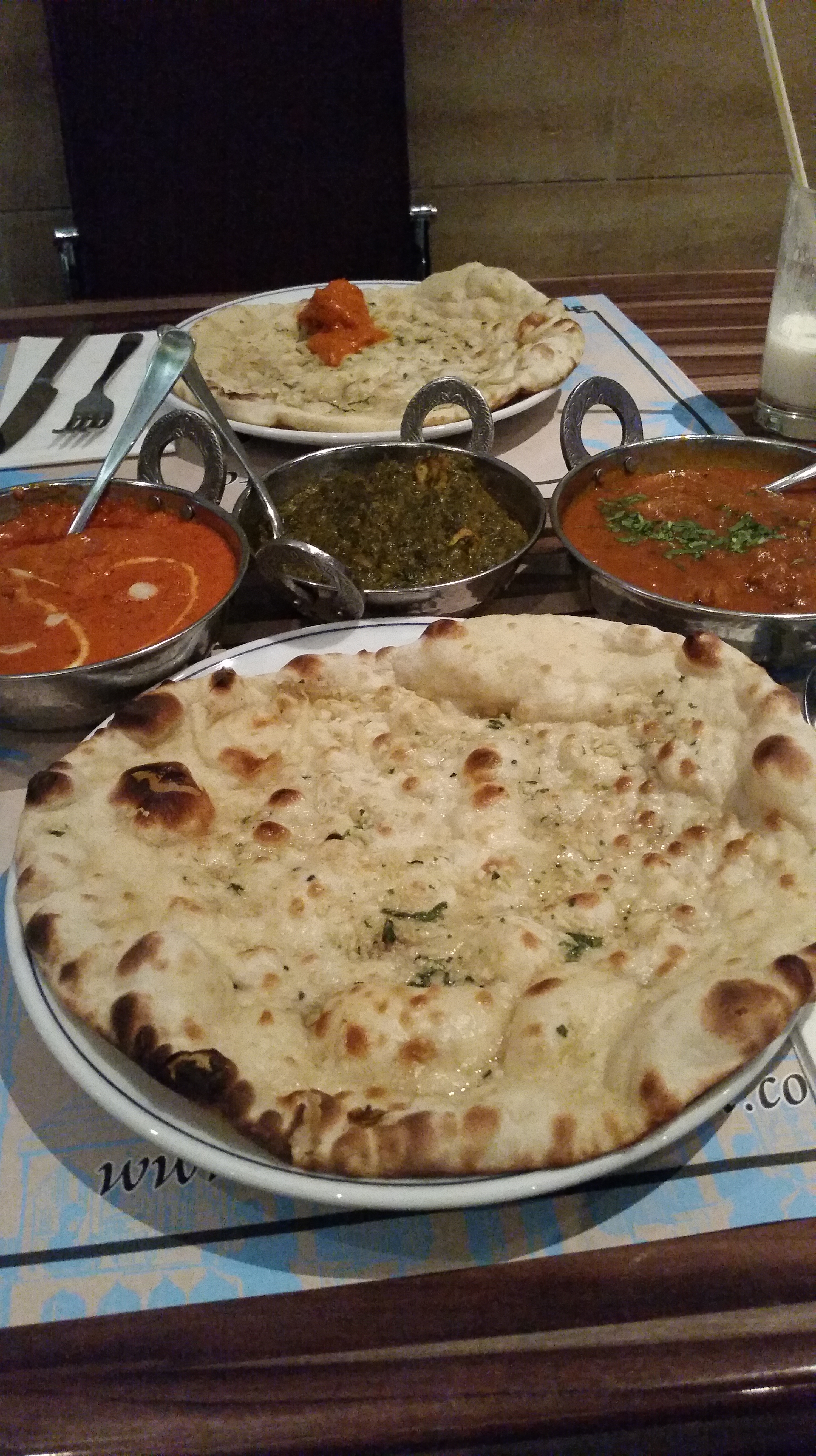 for the 2 of us to share, we ordered a serving of butter chicken (what i had been craving and needed to have), fish tikka curry, sag paneer and a garlic naan each. food was served rather promptly and by that time we were starving and all ready to tuck in.