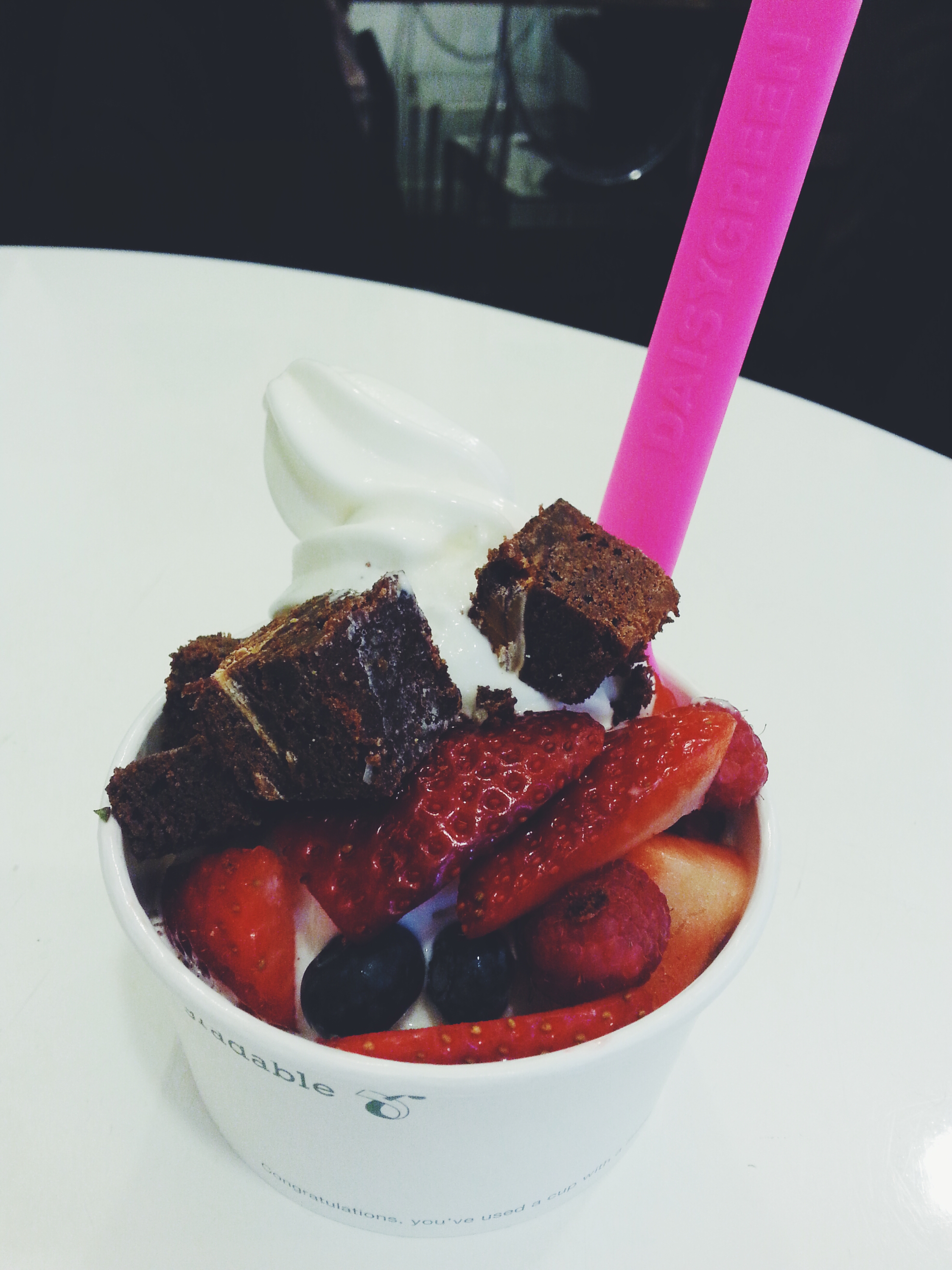 we also decided to try their frozen yoghurt after seeing a daisy green mobile froyo van parked outside their shop. the recommended toppings were berries and brownies so that’s what we opted for!