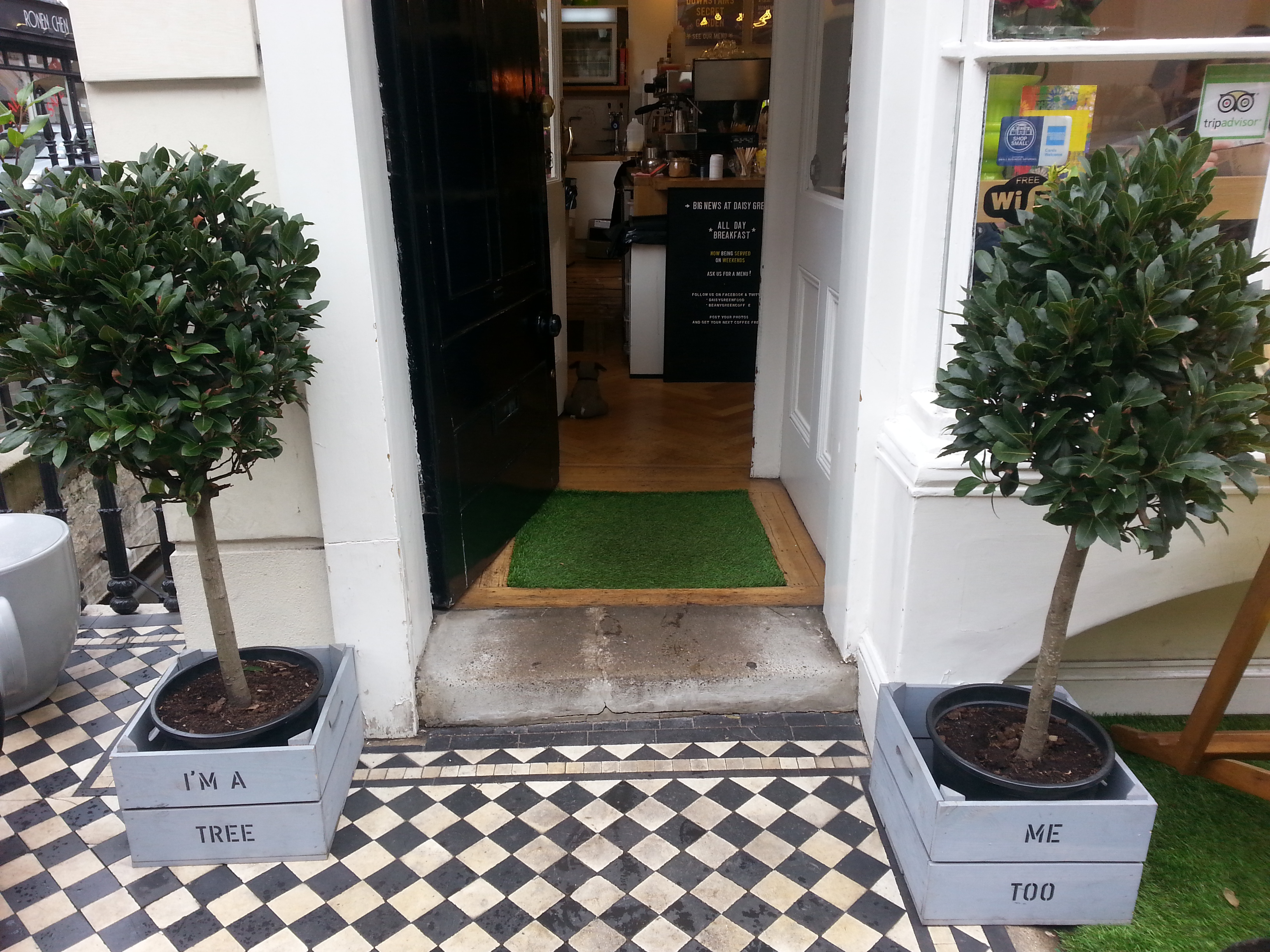 occupying a corner shop along seymour street, i knew i’d like this Aussie cafe one i saw the neon window decor and cute/quirky things they had placed just outside their shop: