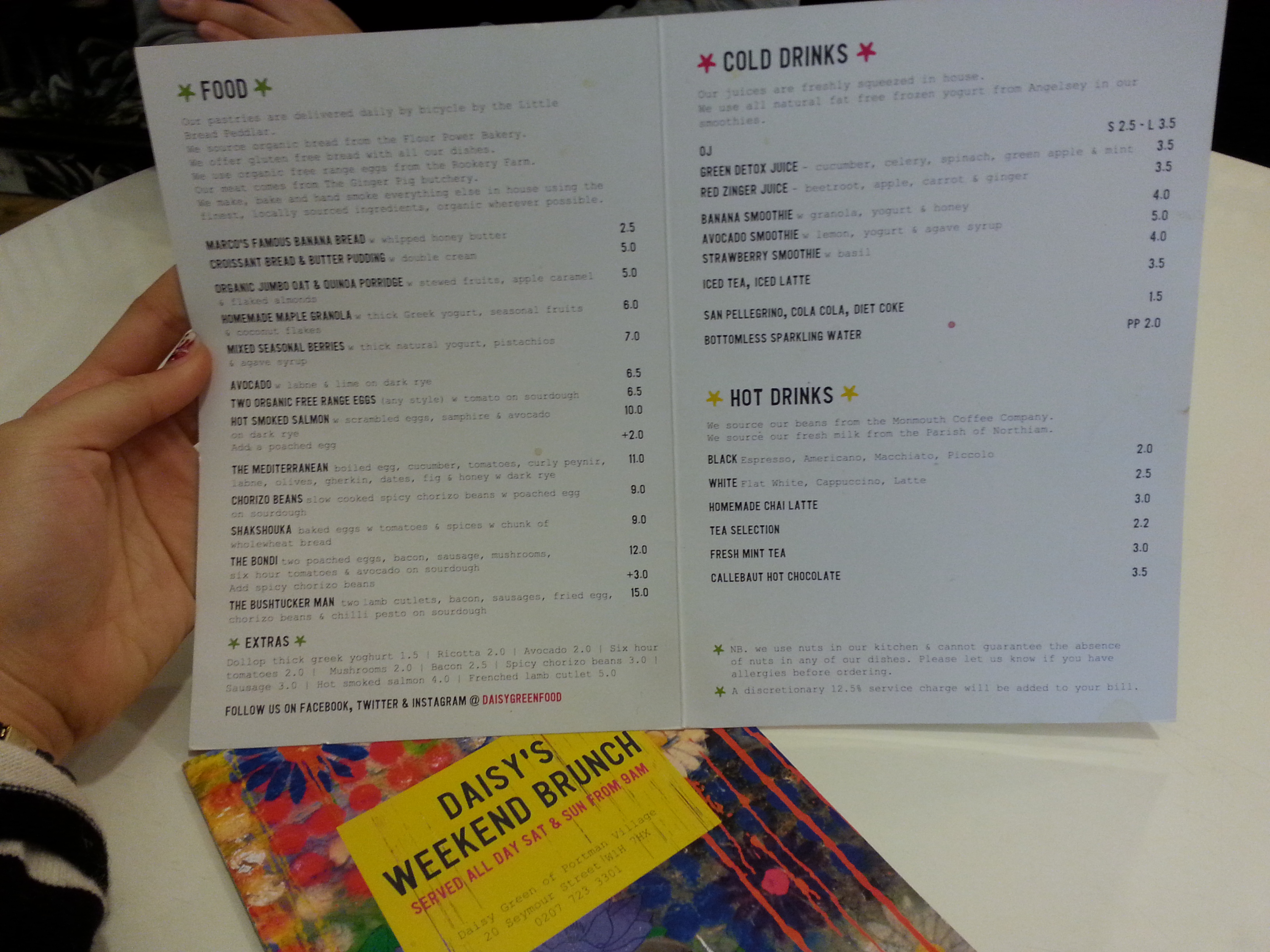 all in all, our experience at daisy green was a lovely one. great food and drinks, great dessert and decor to boot, tucked away in a great location that is central yet quiet, and everything at reasonable prices! what more could one ask for? its been added to my list of places to go for brunch in london; i’d have a meal here over any of the bigger chains anytime.