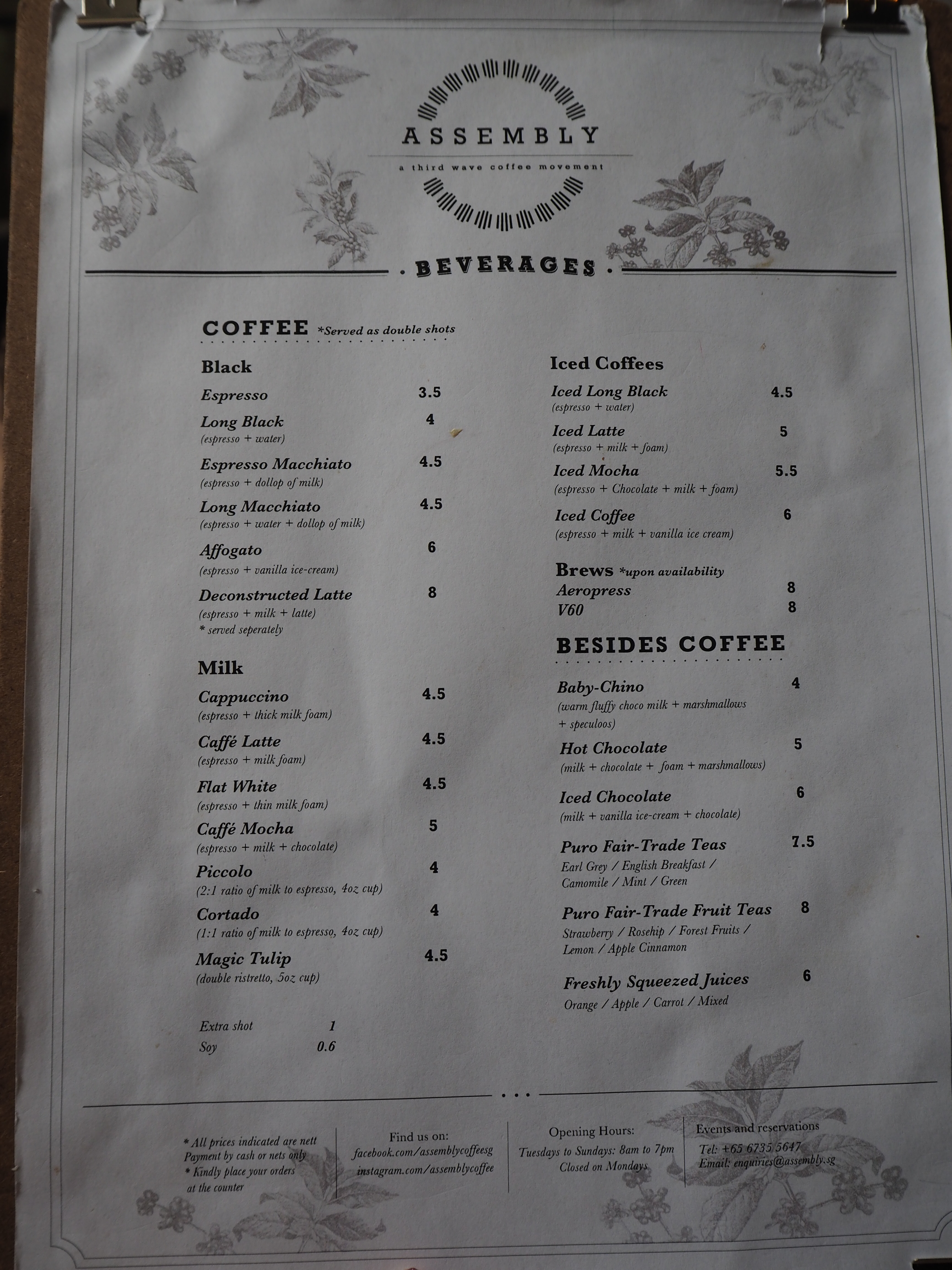 evans lodge just got more exciting with this (relatively) new kid on the block. opened some time late last year/ at the start of this year, assembly prides itself on good coffee and is the perfect place to stop and get a cuppa if you’re in the dunearn road / bukit timah area. i’m not big on coffee but am still very pleased with this addition to the area’s offerings because the food is good too!