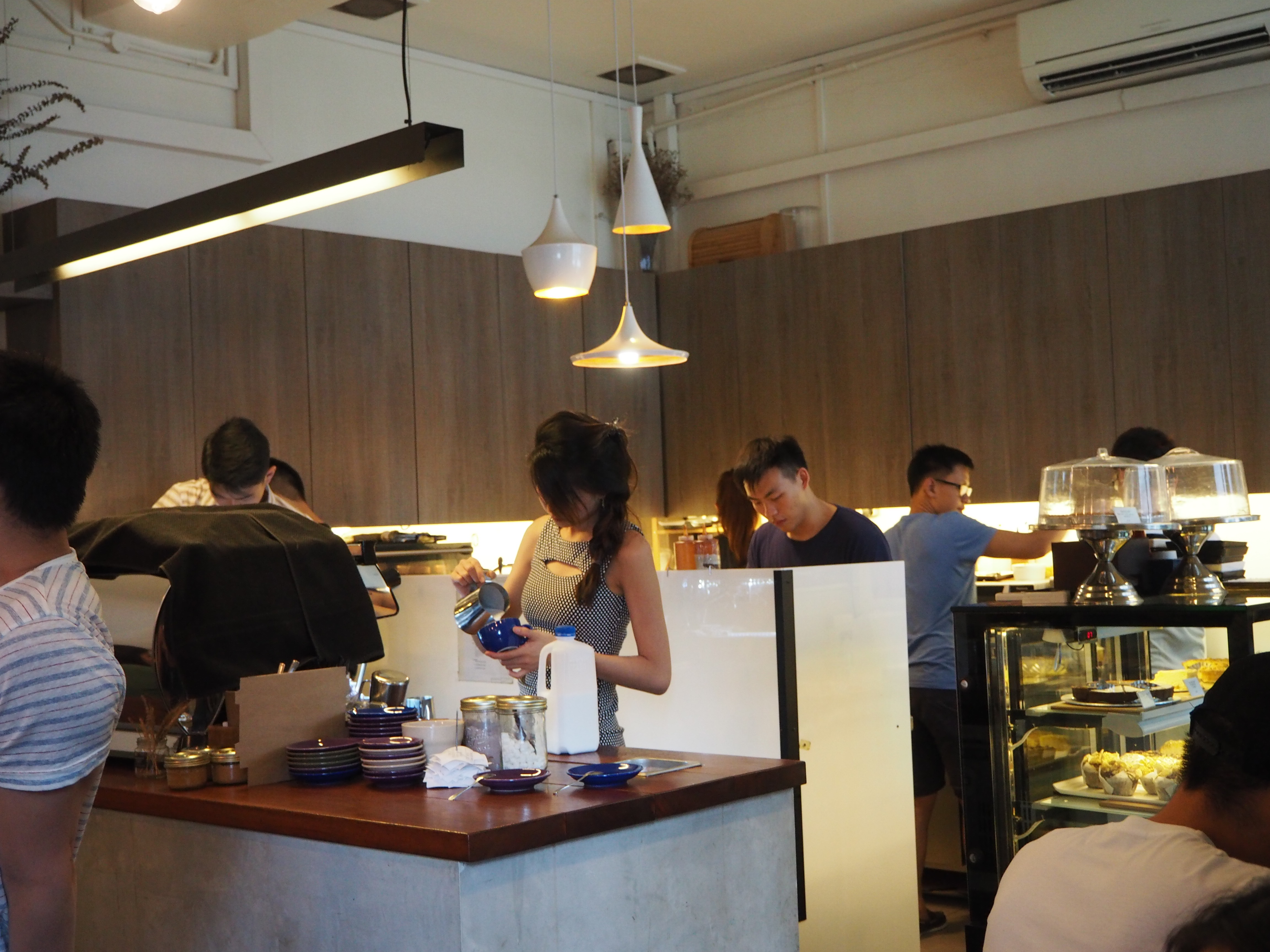 as you can see from the picture, tables are communal so this might not be the best spot for a cosy and romantic first date or an intense pour-your-heart-out conversation with the bffl, but it is great for all other purposes, especially those of the chill hangout sort. this picture was taken at 1030am when we first arrived – the cafe was rather empty and we were clearly spoilt for choice as to where to sit; by the time noon came around however, it was full and buzzing with a healthy lunch crowd.