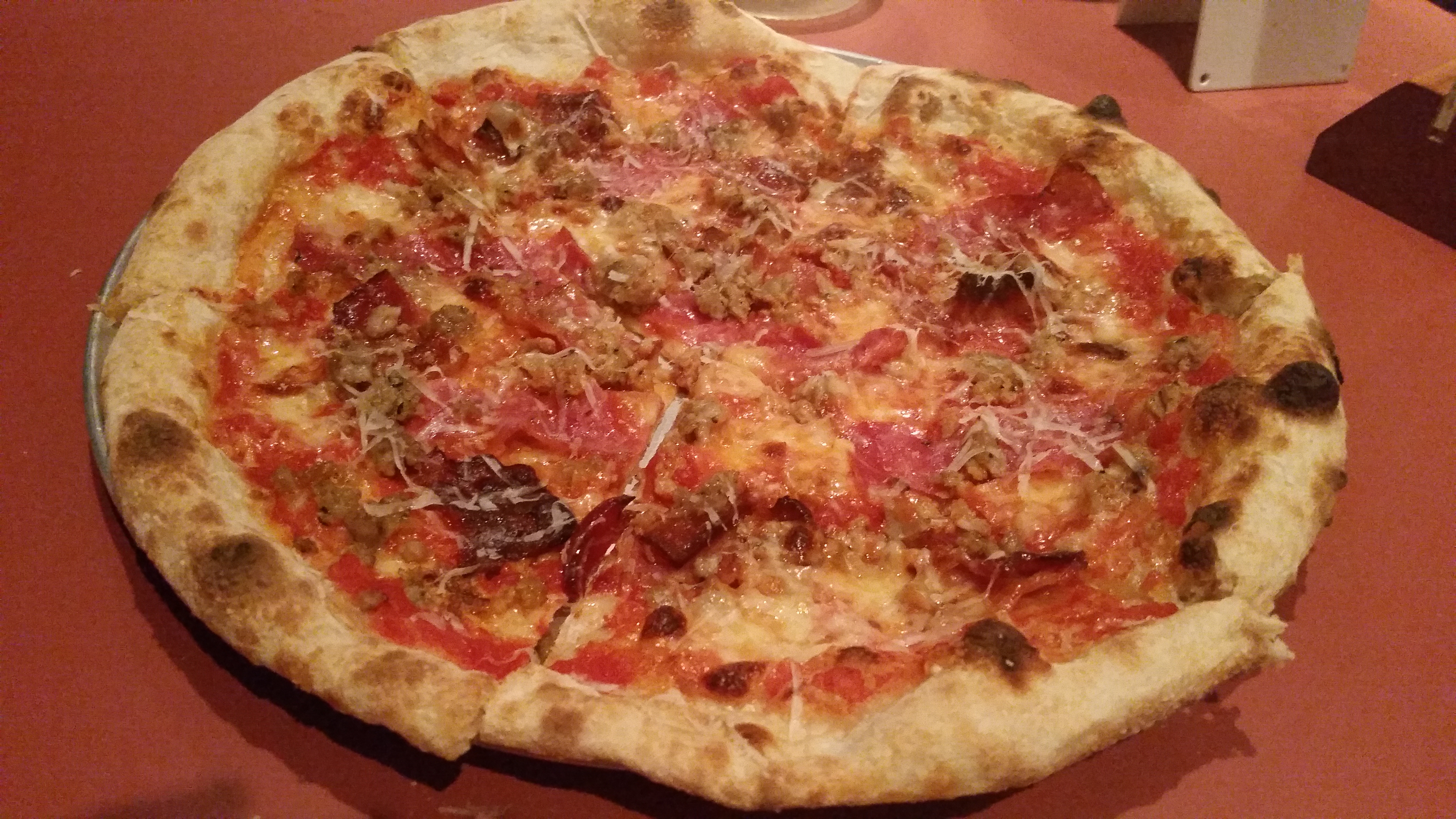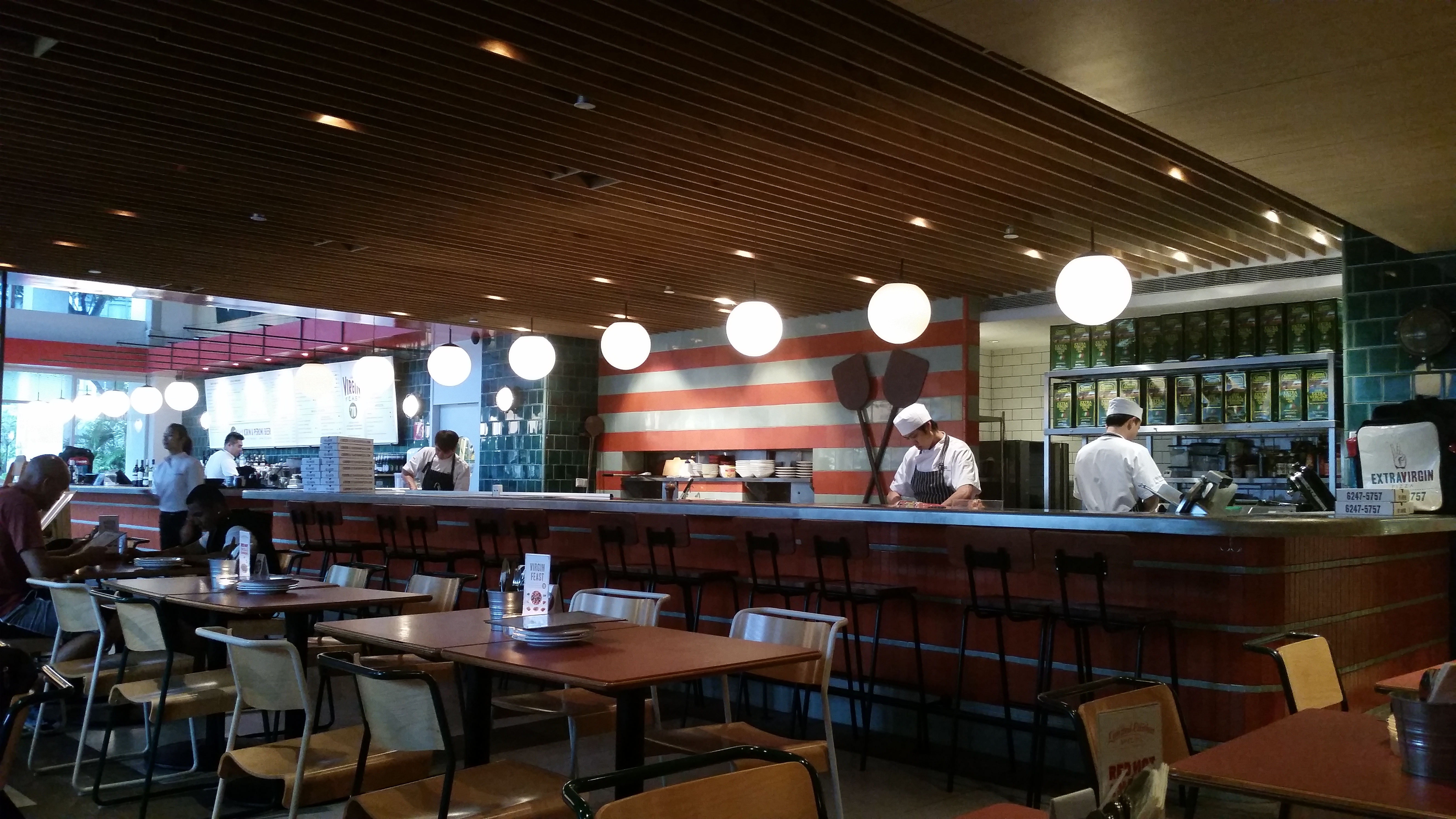 the queue was long but i’m glad that didn’t deter us from joining it because it was worth the wait! the pizza crust was delightfully thin yet thick enough to retain a slight (but sufficiently satisfying) doughy bite (rather than just being crispy right through) and the toppings were fresh and delicious. we watched the dough for our pizza being skillfully kneaded, generously sprinkled with fresh ingredients and then placed into the wood-fired oven. not long after, it emerged in all its freshly-baked glory, smoke and a heavenly aroma emanating from it, and sauce on top still visibly bubbling away from its perfectly-timed stint in the oven.
