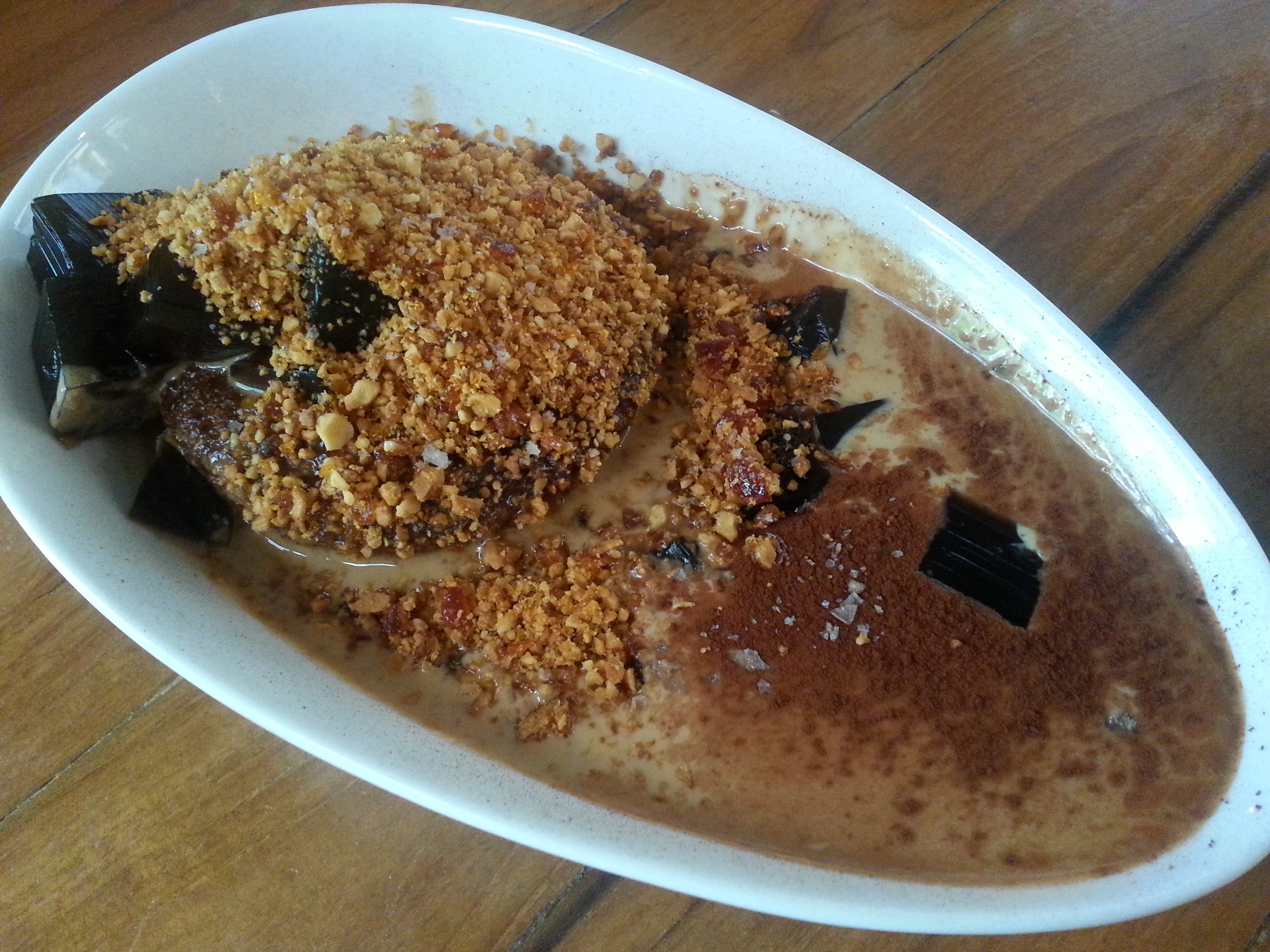 given the serving size, i thought this dish was on the pricey side. no regrets getting it though, because it was a refreshing accompaniment to our savoury mains. my favourite part of this dish was definitely the lemon curd – smooth, thick, creamy and a perfect balance between sweet and sour. i loved it and found myself using every but of rhubarb and coconut bread left to soak it all up! the coconut bread on its own left less of an impression; there was only a very faint hint of coconut and if not for the odd bit of coconut that i chanced upon in the process of enjoying this dish, i would have completely forgotten that it was meant to be coconut bread. maybe if i had had it without the lemon curd, the coconut flavour would have shone through more. texture-wise the bread was dense and moist like banana bread which i really enjoyed. the rhubarb added a good juicy crunch to round the dish up.